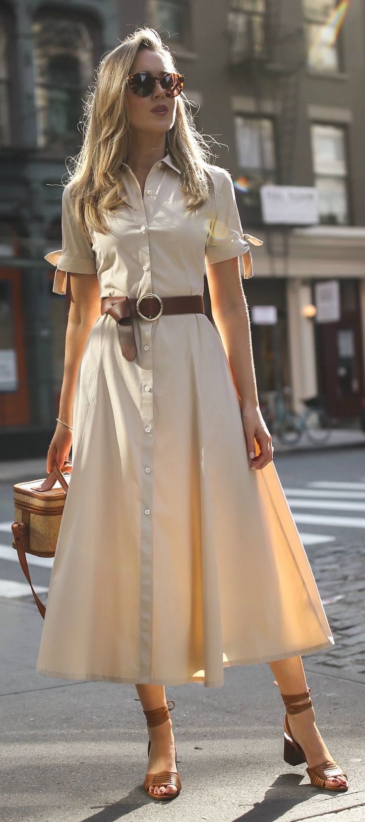 Los vestidos midi o largos en telas ligeras como algodón, lino o rayón son ideales para el calor. Tonos suaves como blanco, celeste, lavanda o amarillo mantequilla aportan frescura y son perfectos para eventos religiosos. Puedes optar por diseños con estampados florales discretos o rayas finas, y combinarlos con sandalias planas, kitten heels y bolsos tipo crossbody para mantener un estilo casual chic.