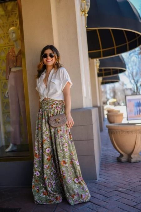 2. Pantalones anchos con blusas ligeras