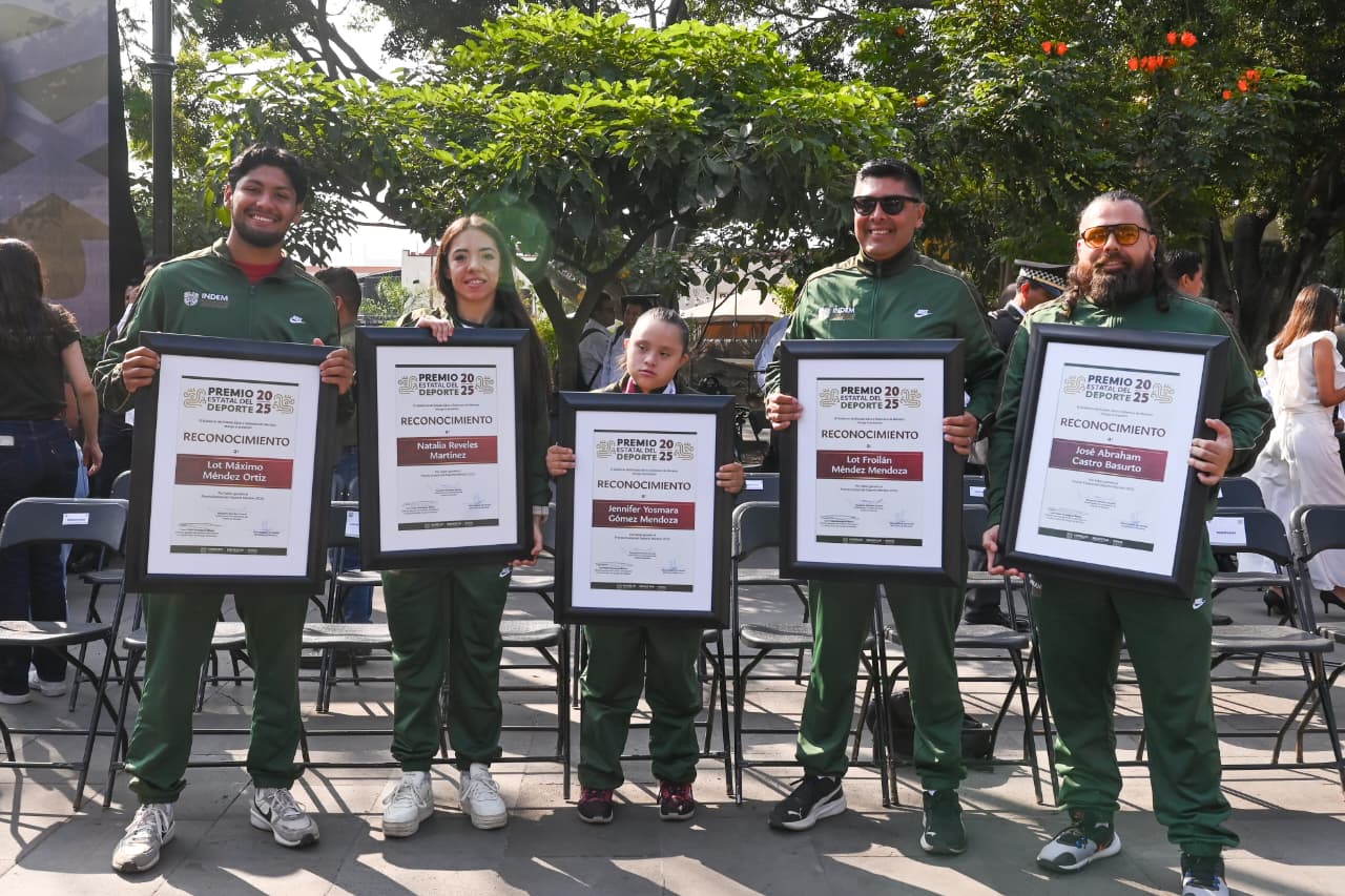 Las y los galardonados en el Premio Estatal del Deporte 2025, entregado en la Plaza General Emiliano Zapata Salazar en Cuernavaca, son: Lot Máximo Méndez Ortiz, especialista en Tiro con Arco; Natalia Reveles Martínez, en kick boxing; y Jennifer Yosmara Gómez Mendoza, paratleta. Como entrenador, Lot Froilán Méndez Mendoza; mientras que, en fomento, protección o impulso a la práctica deportiva, el reconocimiento fue para José Abraham Castro Basurto.