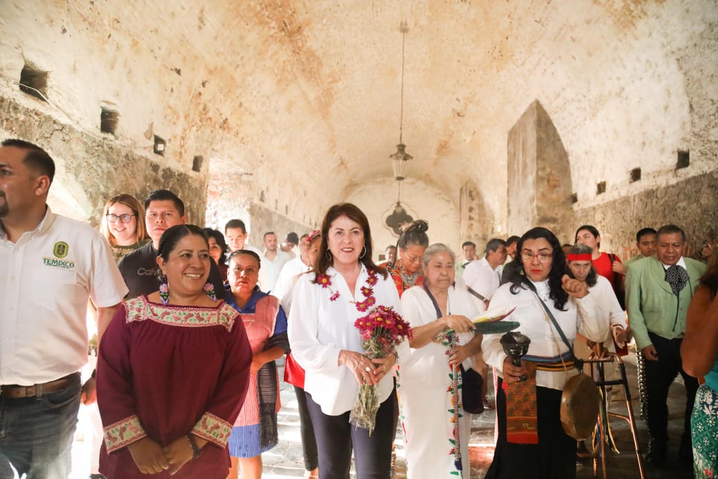 Durante el evento, que tuvo lugar en la ex hacienda de Temixco y fue organizado por el Instituto de Pueblos y Comunidades Indígenas y Afromexicanas de Morelos (IPIAM), la mandataria estatal fue recibida con una ceremonia de bienvenida por integrantes de diferentes comunidades indígenas del estado, así como por el Mariachi Náhuatl Universal Xochipitzouac de Tetelcingo.