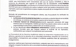 UAEM reporta primeras separaciones y medidas tras denuncia por intimidación en Facultad de Nutrición