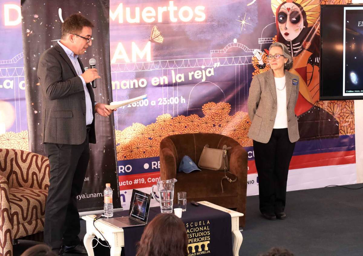 Ante el director del IRyA, Luis Alberto Zapata González, colegas, estudiantes e integrantes de la comunidad de esa entidad universitaria, la astrónoma ofreció la conferencia híbrida “El nacimiento de las estrellas y los sistemas planetarios”, en ocasión del doctorado honoris causa 2025 que le fue conferido por la UNAM.