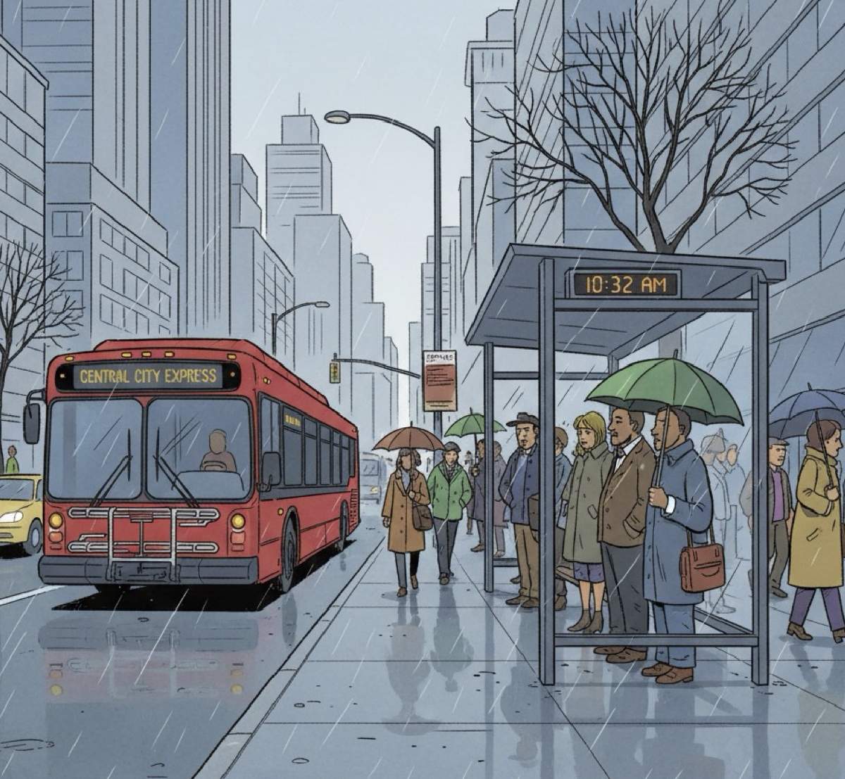 Figura 2. Marcadores de tiempo, “Cuando hacemos la parada a un autobús se introduce así una regularidad temporal, un marcapasos cuya simetría rompe el caos del tráfico…” (Idea tomada de [6]).