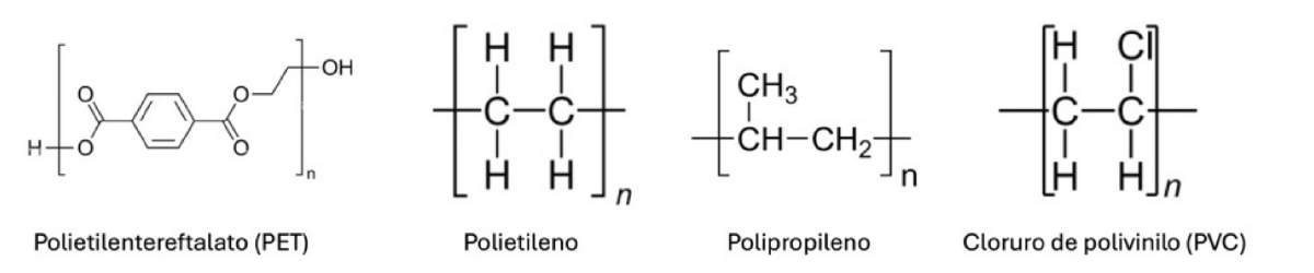 Figura 1. Estructura química de los diferentes monómeros que componen a los plásticos de uso masivo.