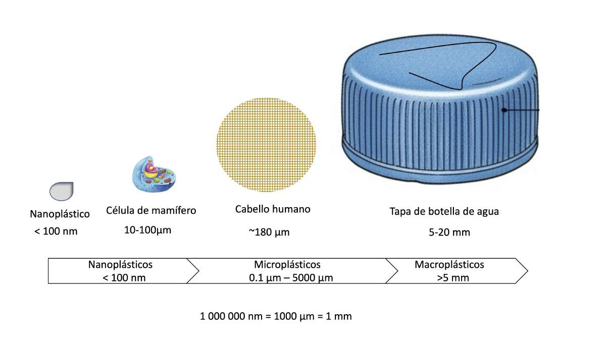 nanoplásticos. Figura elaborada a partir de imágenes tomadas de https://www.pexels.com/es-es/ y una generada por la inteligencia artificial Gemini de Google (https://gemini.google.com/app?hl=es)