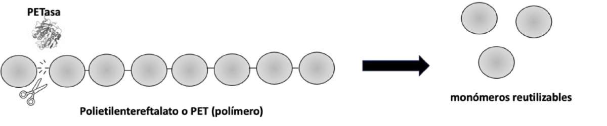 Figura 4. Esquema de cómo actúan las PETasas, catalizando la despolimerización del PET. Elaboración propia.