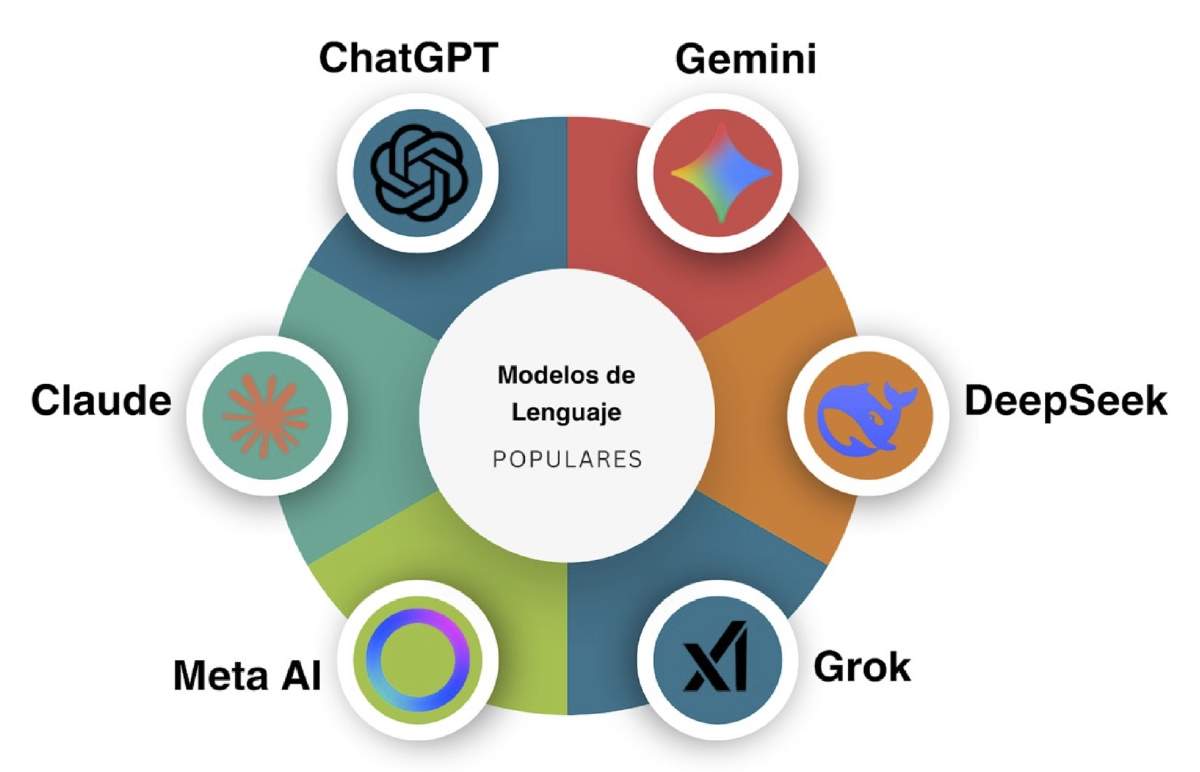 Figura 2. Los modelos extensos de lenguaje (LLM) más populares. Son sistemas de inteligencia artificial de acceso público, orientados a la generación de texto.