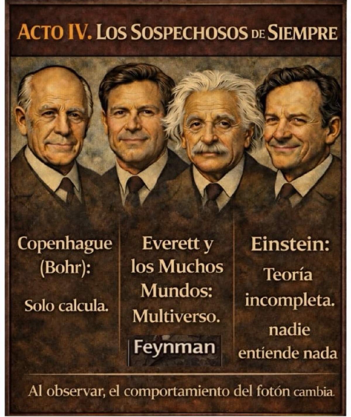 Copenhague (Bohr): “No hay misterio. La función de onda solo sirve para hacer cálculos. No preguntes qué es.”