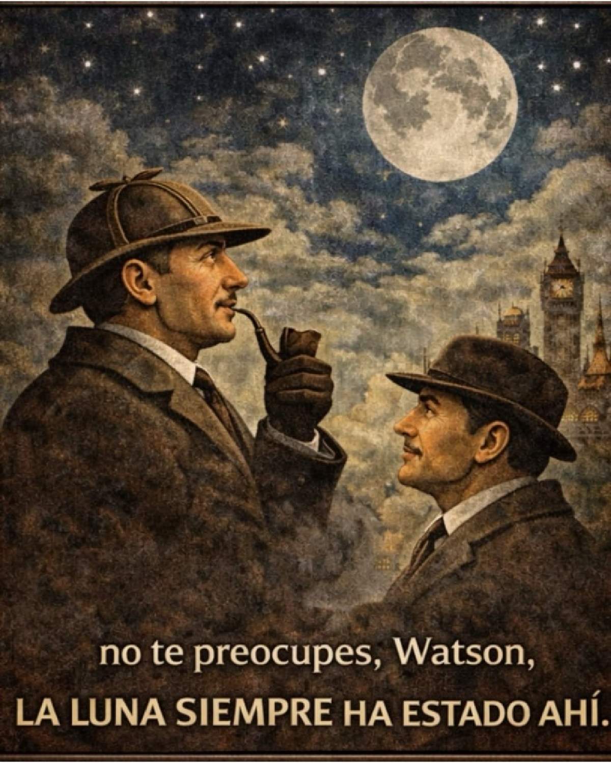 Holmes mira al cielo y responde con firmeza: Por supuesto que sí, Watson. La luna brillaba millones de años antes de que hubiera humanos, ratones o hormigas que la observaran. La realidad no depende de nuestros ojos. El misterio cuántico habla de partículas diminutas, no de la existencia de planetas y estrellas.