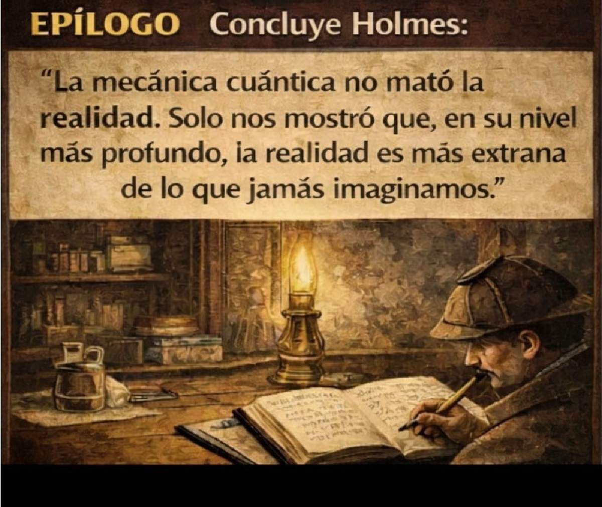 Concluye Holmes: La mecánica cuántica no mató la realidad. Solo nos mostró que, en su nivel más profundo, la realidad es más extraña de lo que jamás imaginamos.