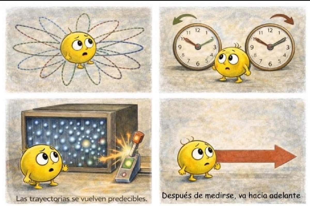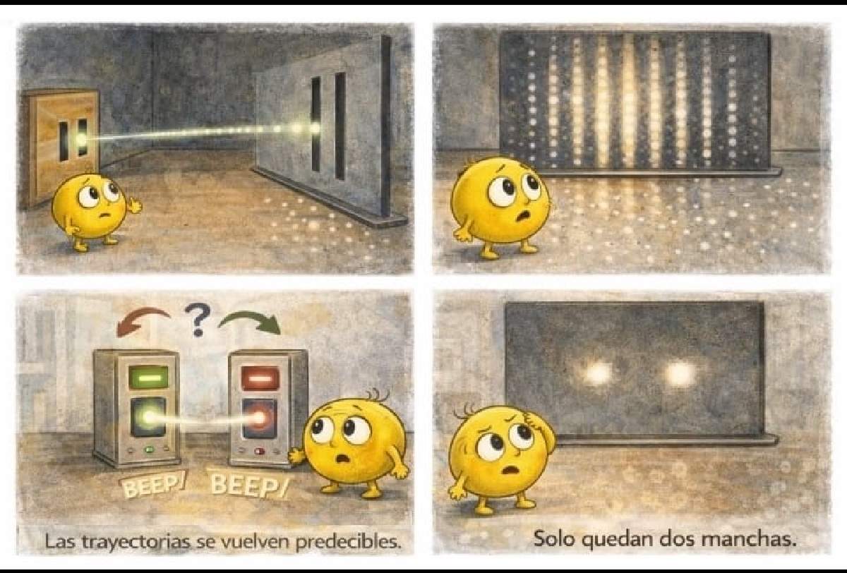 Siempre —responde Julia—. En cuanto ponemos detectores para saber por dónde pasó, el patrón ondulado se pierde. En la pantalla solo quedan dos manchas, una frente a cada rendija.