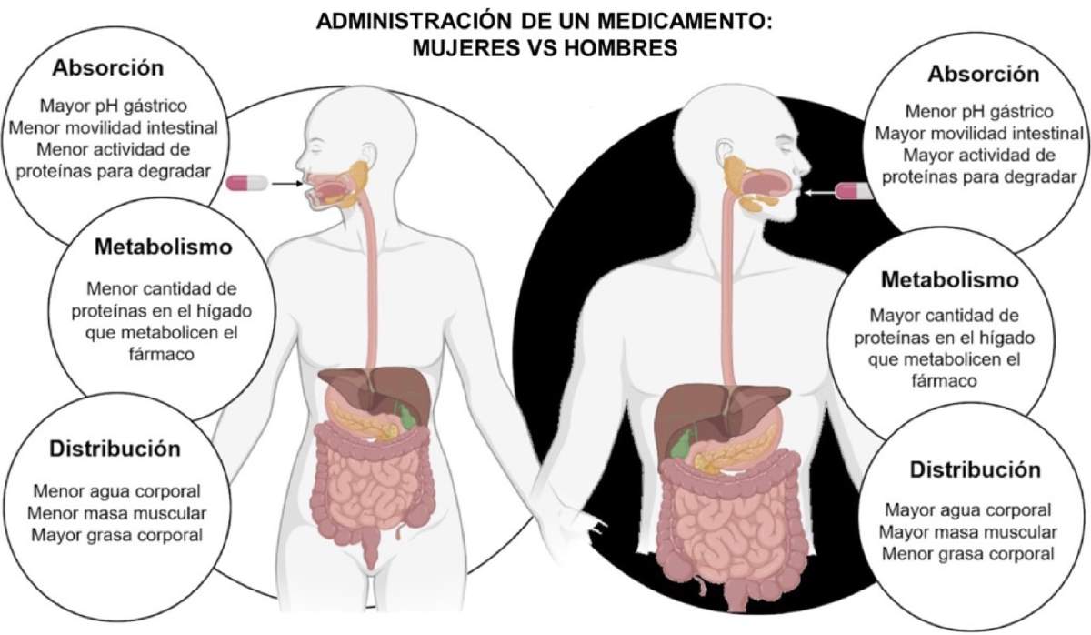 Figura 2. Diferencias fundamentales al tomar un medicamento entre hombres y mujeres [3].