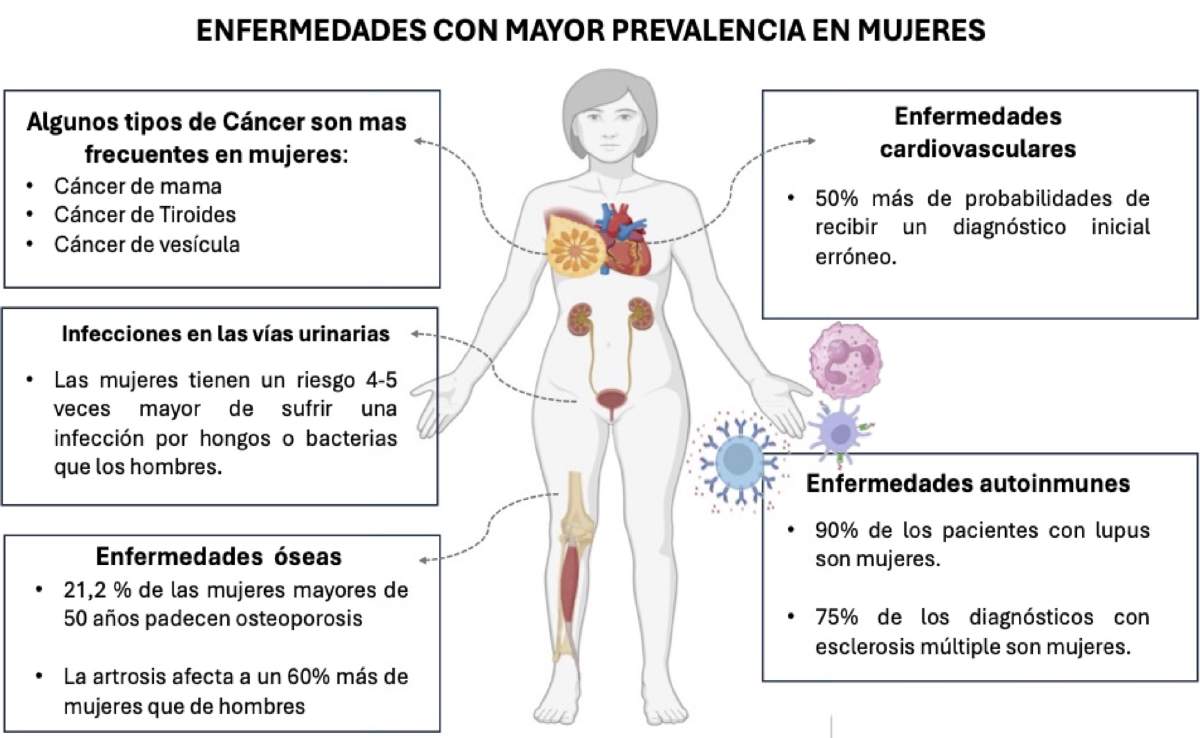Figura 3. Principales enfermedades con mayor prevalencia en mujeres, basado en datos epidemiológicos y reportes clínicos previos [4, 5].