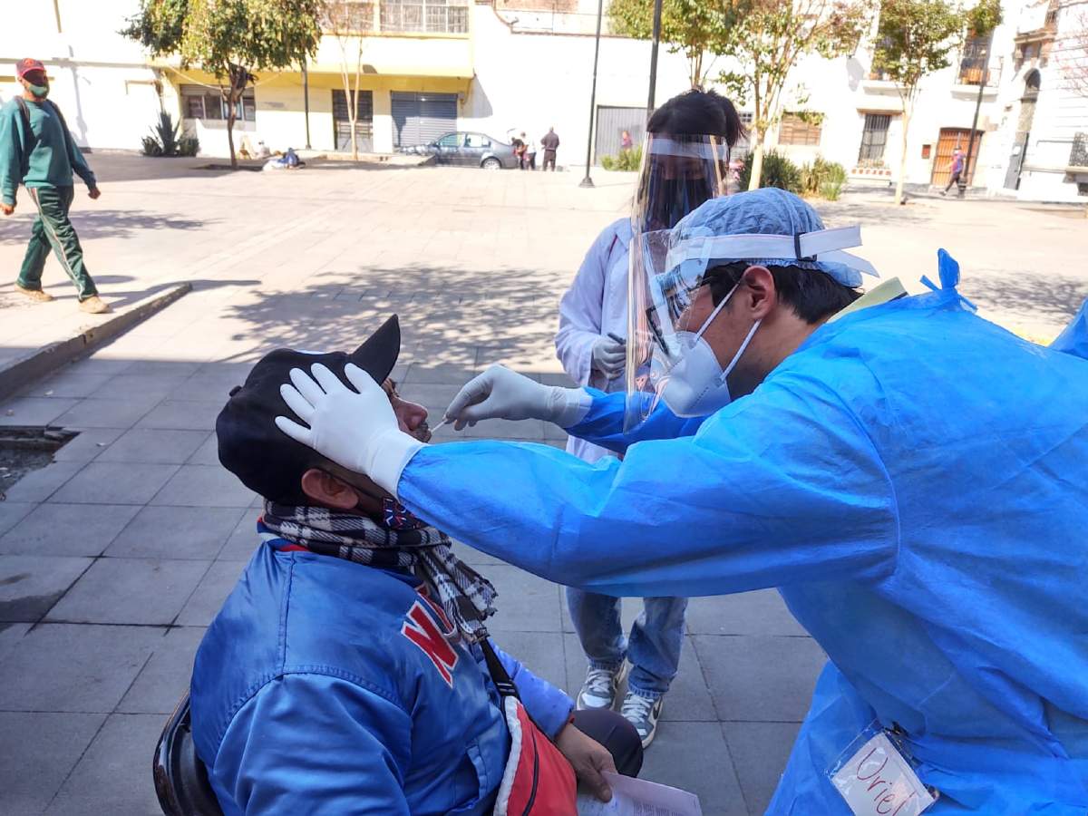 Figura 2. Fotografía del proceso de toma de muestra a personas en situación de calle (fotografía de Alí Ruiz Coronel).