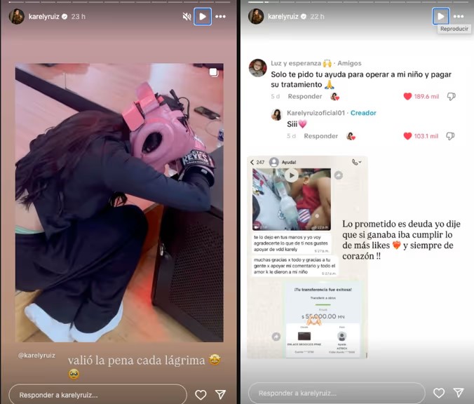 Entre las solicitudes, una cuenta llamada “Luz y Esperanza” llamó la atención de Karely, alegando que necesitaban cubrir gastos médicos de un menor enfermo.