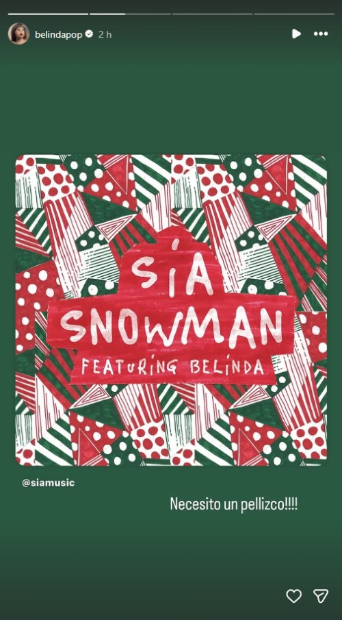 La cantante australiana Sia sorprendió a sus seguidores al anunciar una colaboración con la mexicana Belinda, en una nueva versión de su exitosa canción “Snowman”, tema original de 2017 que se ha convertido en un clásico navideño.