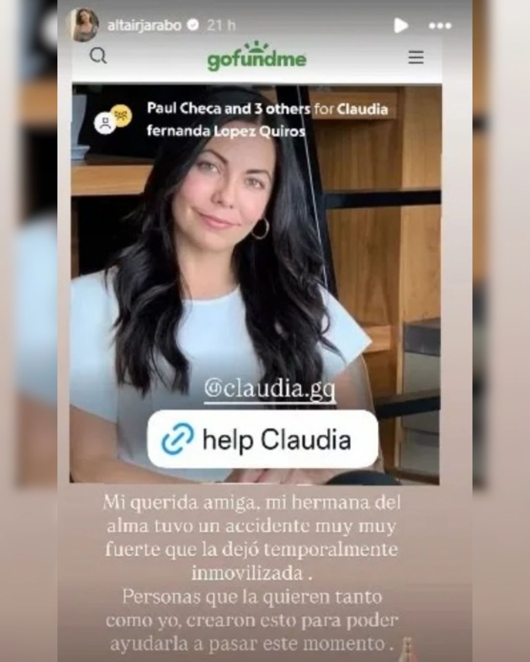 “Mi querida amiga, mi hermana del alma, tuvo un accidente muy muy fuerte que la dejó temporalmente inmovilizada. Personas que la quieren tanto como yo crearon esto para poder ayudarla a pasar este momento”, escribió en Instagram.