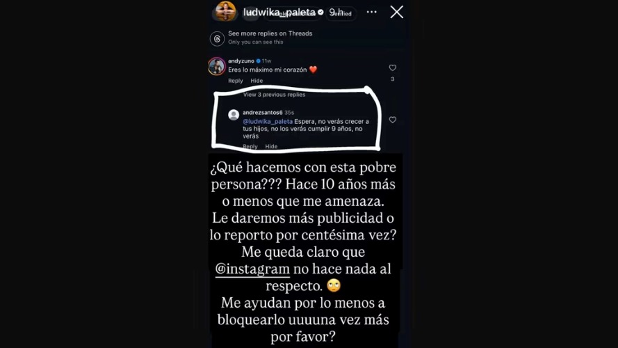 La actriz Ludwika Paleta volvió a encender las alertas al denunciar que continúa recibiendo amenazas de muerte a través de redes sociales, las cuales no solo van dirigidas a ella, sino también a su familia y, en especial, a sus hijos.