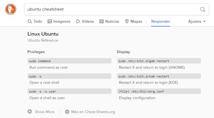 Lo mismo sucede con otros programas como Photoshop y Microsoft Excel, e incluso con sistemas operativos. Si buscas windows cheatsheet te mostrará los atajos de teclado del SO de Microsoft; si en su lugar optas por mac cheatsheet, lógicamente verás los relacionados al software de Apple. Y el truco también soporta distribuciones de Linux como Ubuntu y KDE, entre otras, pero con la diferencia de que se enfoca sobre comandos para el terminal, en lugar de shortcuts para el teclado.