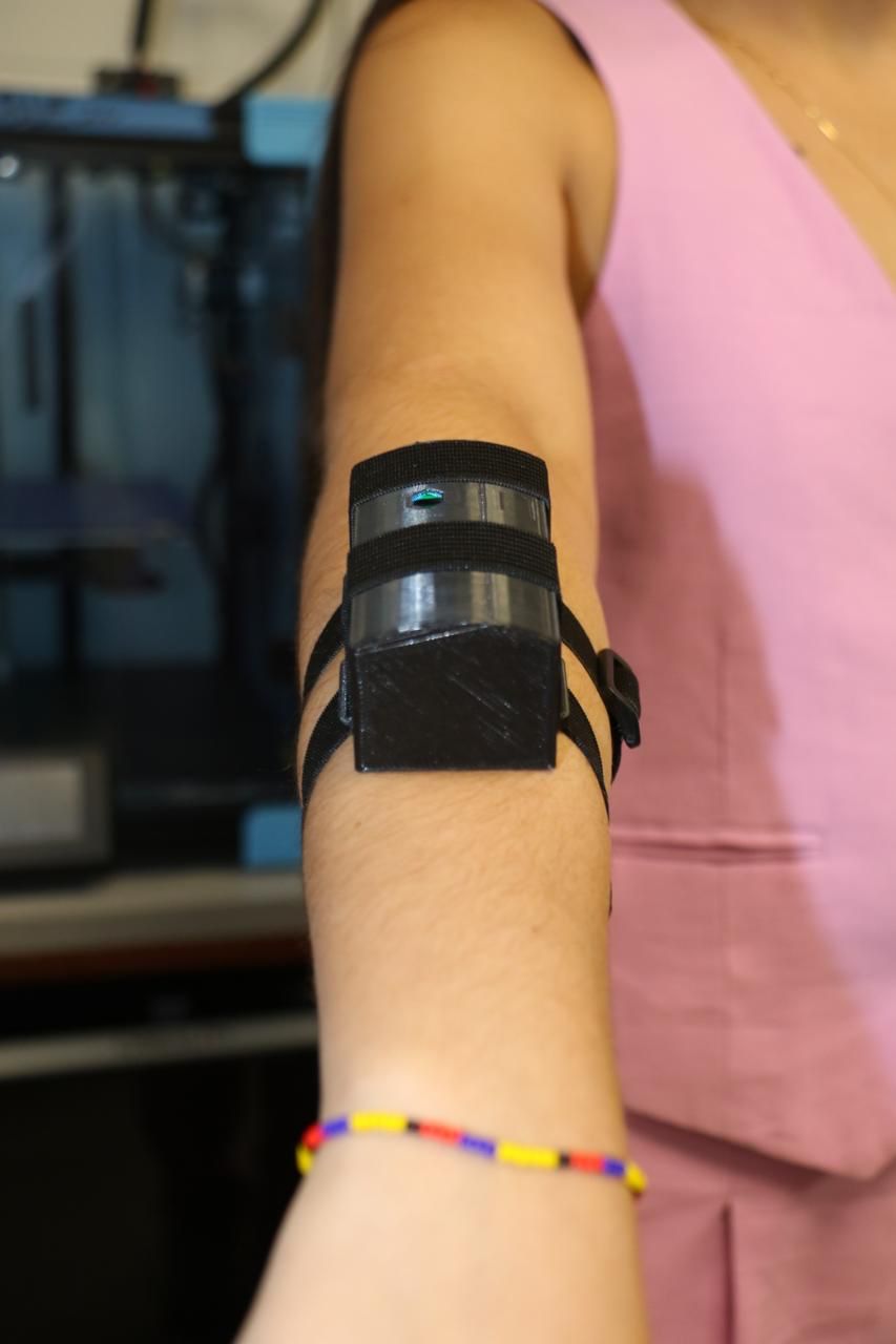 En la primera fase del proyecto, se desarrollaron módulos con pequeñas cajas ligeras (de 6 x 3.5 cm) que contienen un sensor electromiográfico y un microcontrolador. Estos dispositivos capturan las señales de movimiento y las envían al videojuego, donde los pacientes deben completar metas basadas en las repeticiones definidas por su terapeuta.