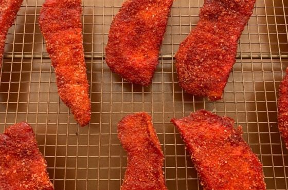 9._ Añade el chile en polvo y la sal, mezclando nuevamente para cubrir todas las piezas.