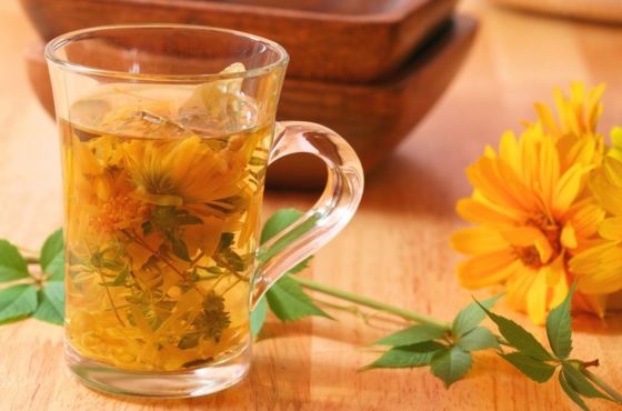 - Al hervir, añade los pétalos junto con ramitas de manzanilla y hojas de hierbabuena.