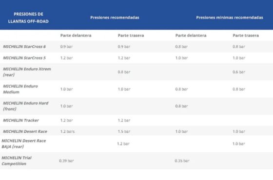 El fabricante siempre determina el rango ideal según el peso de la motocicleta y su diseño. De acuerdo con la Guía de la Presión de las Llantas de Michelín, los valores sugeridos en pista son: