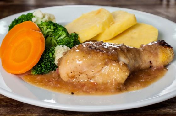 6 muslos de pollo; 3 cucharadas de miel; 1 cucharada de paprika; 1 cucharada de salsa de soya; 1 diente de ajo picado; sal y pimienta.