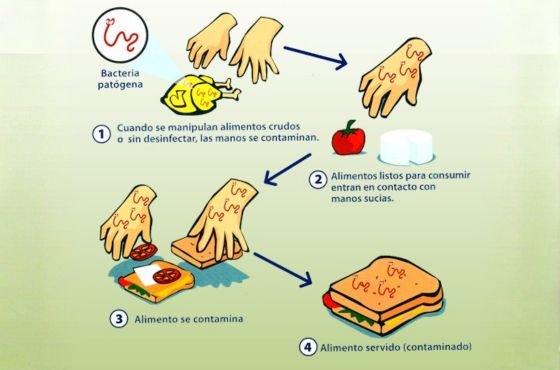 Los alimentos crudos pueden contener bacterias y otros microorganismos patógenos. Su manipulación debe ser cuidadosa para que estos no lleguen a manos, utensilios, tablas de cortar o superficies donde se preparen otros alimentos.