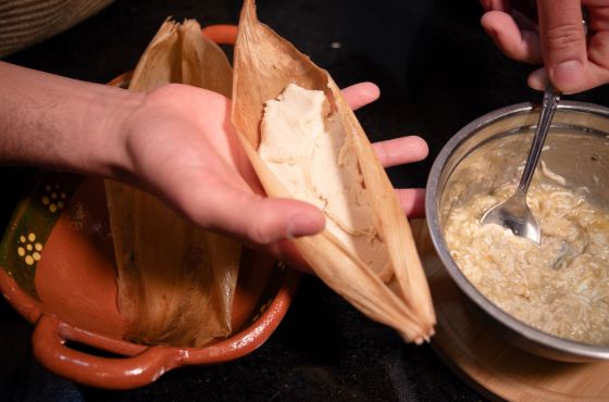 Los tamales estarán listos cuando la hoja se desprenda fácilmente de la masa.