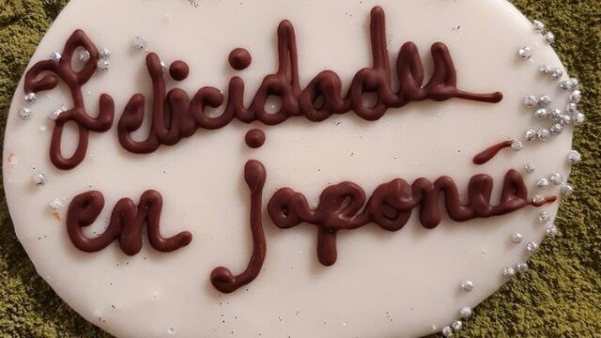 “Hoy es mi cumpleaños y mi hermana mandó a poner “felicidades” en japonés en la plaquita de chocolate del pastel como dedicatoria. Vean lo que pusieron”, Leonel Martínez.