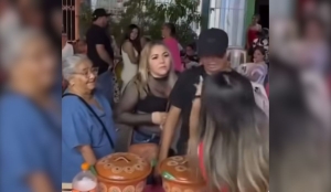 Un video que rápidamente se volvió viral muestra a una mujer, apodada “Lady Hambreada”, lanzando una cazuela al piso tras quejarse por no recibir un taco adicional en un evento.