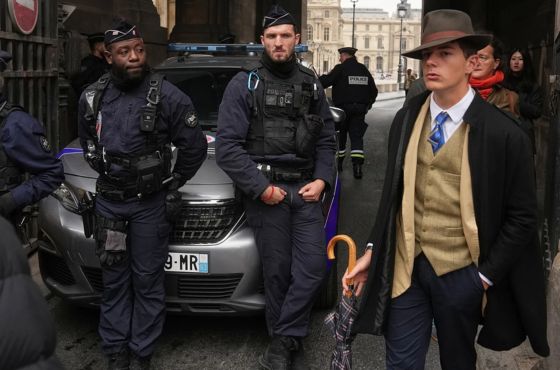 La imagen que lo catapultó a la fama buscaba documentar una escena policial: tres agentes apoyados en un coche que bloqueaba una entrada del Louvre, pocas horas después del asalto. A la derecha, una figura solitaria y elegante cruzaba la escena, evocando un fotograma de cine negro. Internet hizo el resto: “el hombre del Fedora” se convirtió en detective, espía o personaje de serie.
