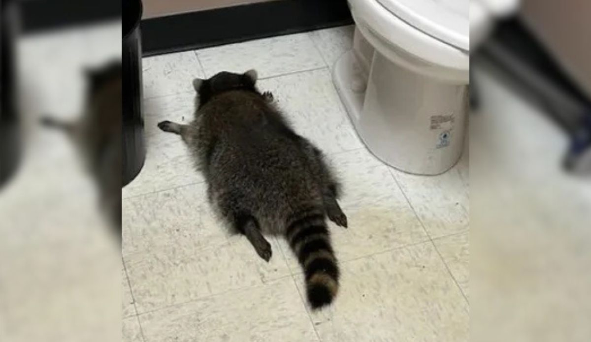 Un mapache se embriagó tras beber de varias botellas en una licorería de Virginia, Estados Unidos, y terminó desmayado en el baño del establecimiento, informaron autoridades locales.