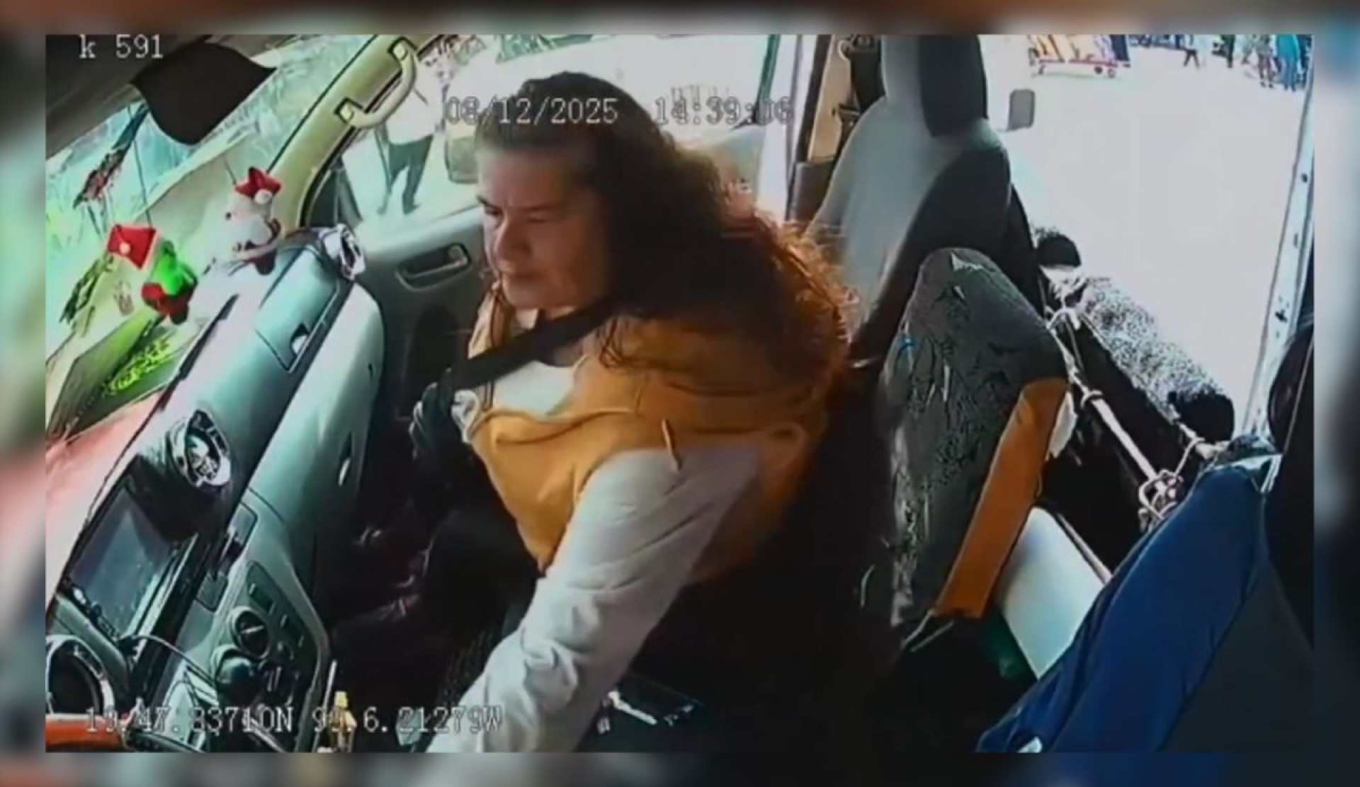 Al inicio del video, se observa cómo el conductor detiene la unidad para permitir que la pasajera aborde. La mujer, vestida con camiseta blanca y suéter naranja, sube sin dificultad mientras el chofer se baja para realizar una maniobra rápida. Ese breve momento fuera del vehículo fue suficiente para que la pasajera identificara una oportunidad clara para cometer el hurto.