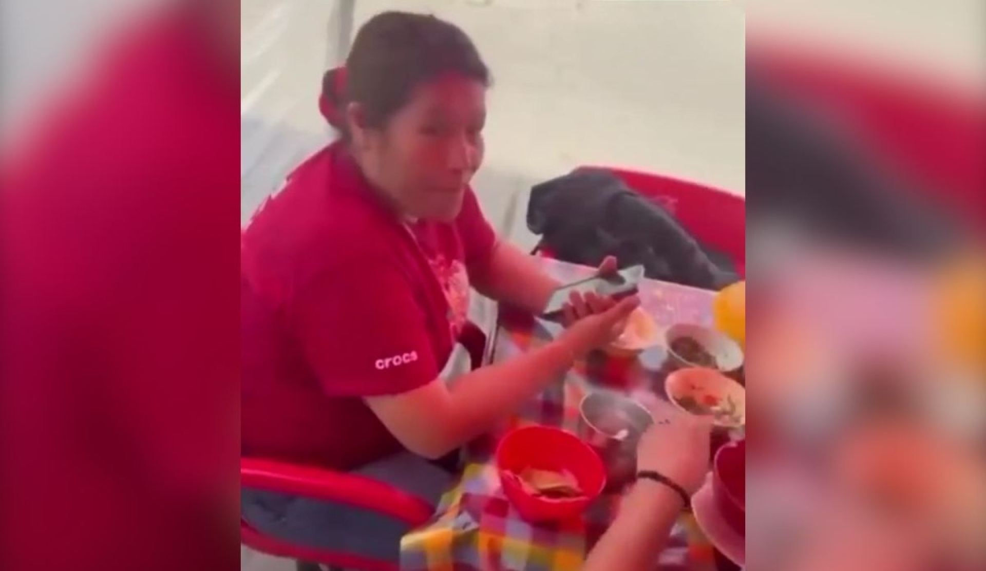 En la grabación se escucha a la comerciante reclamar el pago ante las personas presentes: “¿Cómo ven, alumnos? Aquí está esta señora comiendo y no quiere pagar porque no le gustó. ¿Qué les parece?”, cuestionó, mientras la clienta respondía: “Aunque lo ponga así o que lo ponga así...”.