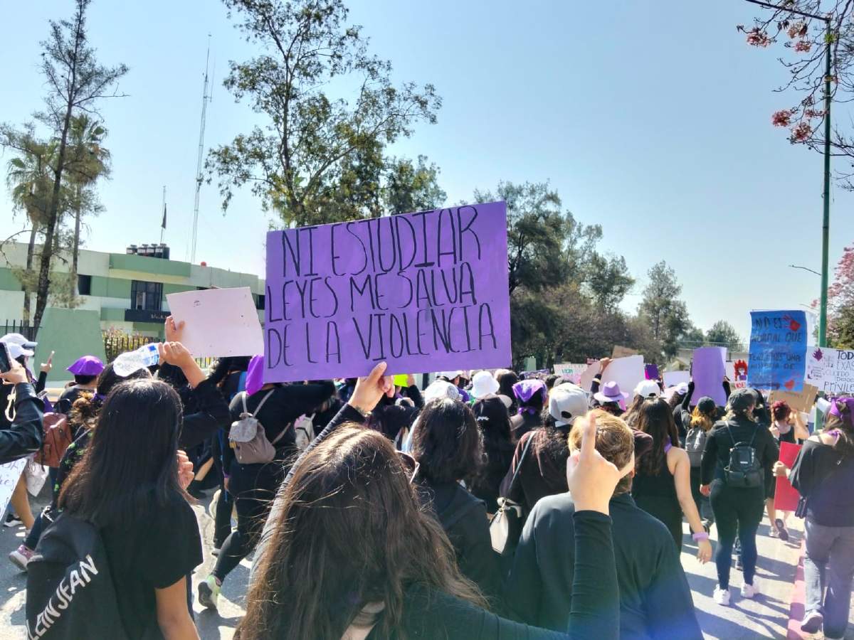 Este año, la movilización está marcada por los recientes feminicidios de las estudiantes de la Universidad Autónoma del Estado de Morelos (UAEM), Kimberly Joselin y Karol.