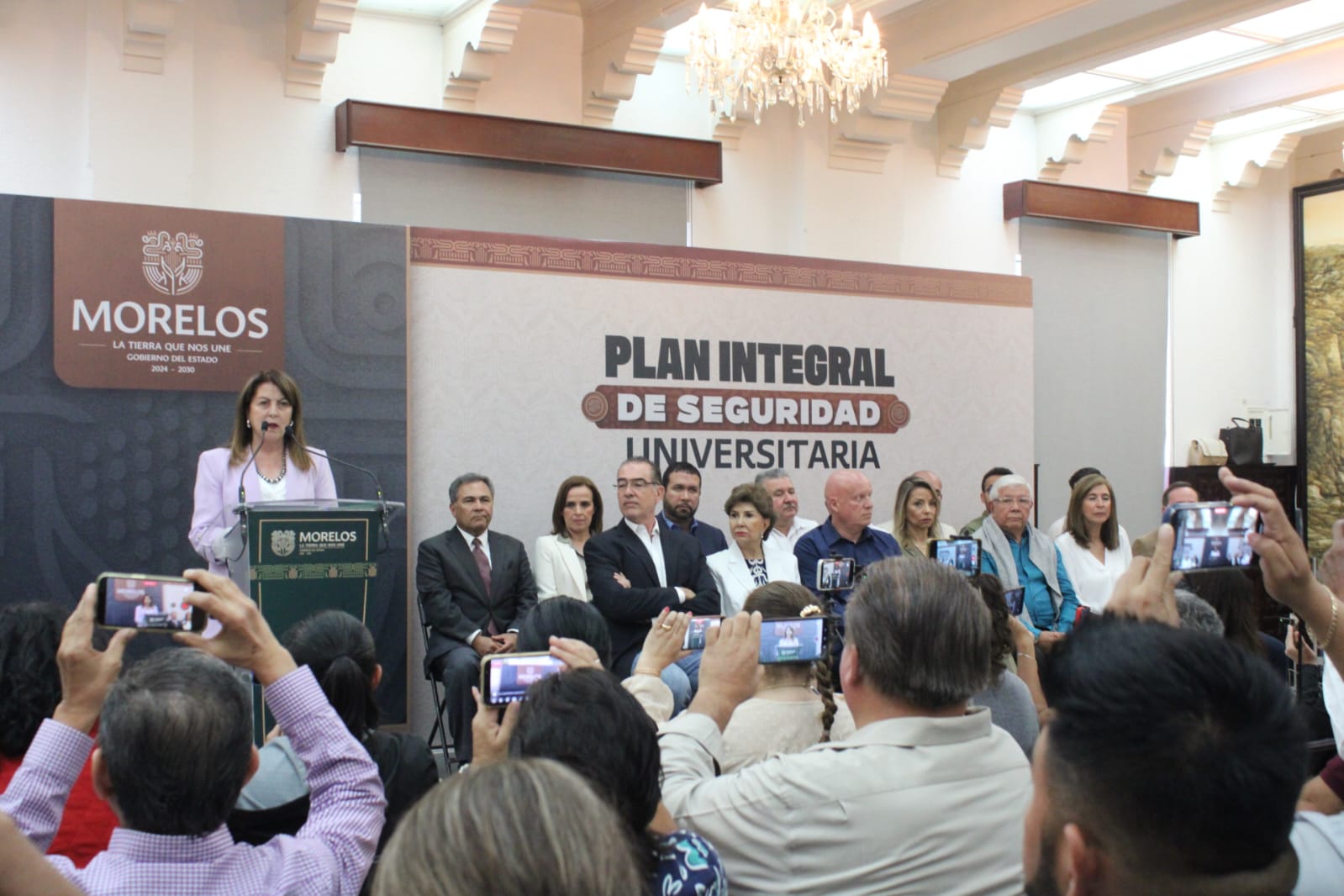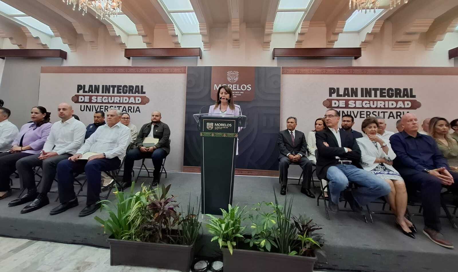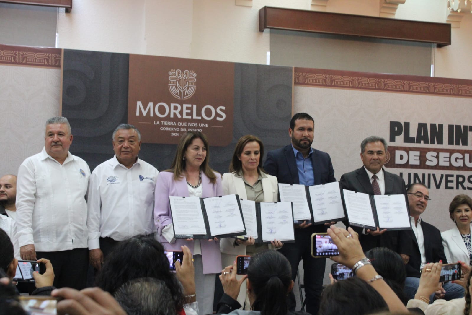 Este mismo día se efectuó la firma del convenio de implementación del plan de seguridad universitaria, con rectores y directores de la Upemor, UTEZ, UTSEM y los tecnológicos de Zacatepec y Cuautla; estudiantes de estas universidades estuvieron presentes y la titular del Ejecutivo local anunció que ya han comenzado a integrar los consejos estudiantiles de seguridad.