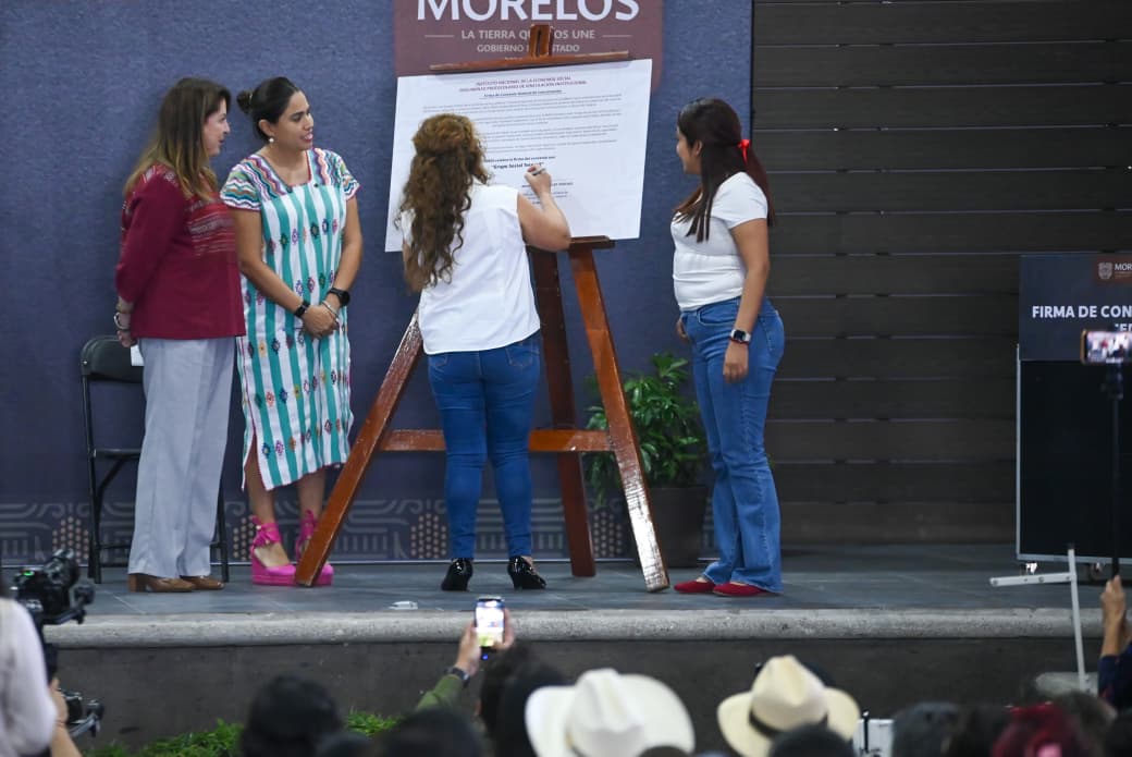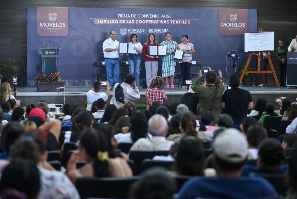 Bajo el compromiso de fortalecer el desarrollo comunitario y la generación de empleo, la gobernadora Margarita González Saravia encabezó la firma de convenio para el impulso de cooperativas textiles en el municipio de Tetecala.
