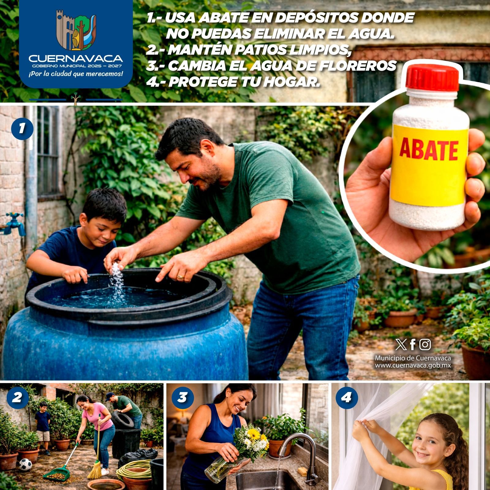 El gobierno municipal reiteró que la prevención es una responsabilidad compartida, por lo que invita a la población a adoptar medidas sencillas como eliminar cualquier recipiente que acumule agua, cambiar el agua de floreros, limpiar canaletas y utilizar abate cuando sea necesario. La protección de la salud pública comienza en el hogar y es compromiso de todas y todos.