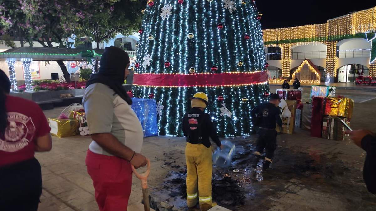 De acuerdo con información policial, el hecho se registró alrededor de las 23:11 horas, por lo que al lugar acudió personal de Protección Civil y Bomberos, que logró controlar el fuego, evitando que alcanzara el árbol navideño.