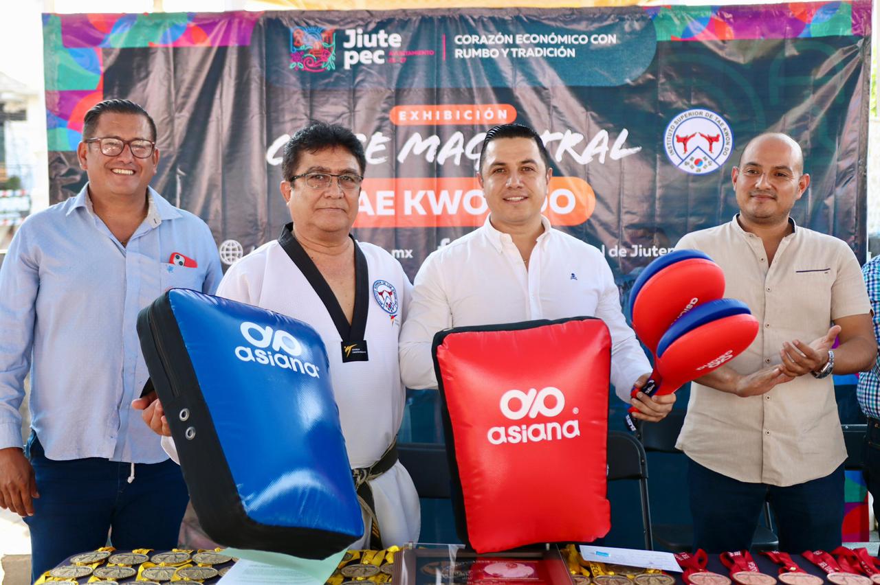 El alcalde Eder Rodríguez Casillas entregó equipamiento deportivo para que los más de 500 niños y niñas que toman clases gratuitas de taekwondo en Jiutepec, para que puedan hacerlo de manera más segura y efectiva.