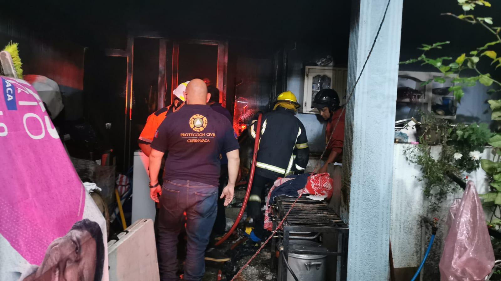 Elementos del Heroico Cuerpo de Bomberos y de la Subsecretaría de Protección Civil de Cuernavaca sofocaron el incendio de una casa habitación en la calle Miguel Hidalgo del poblado de Ocotepec.