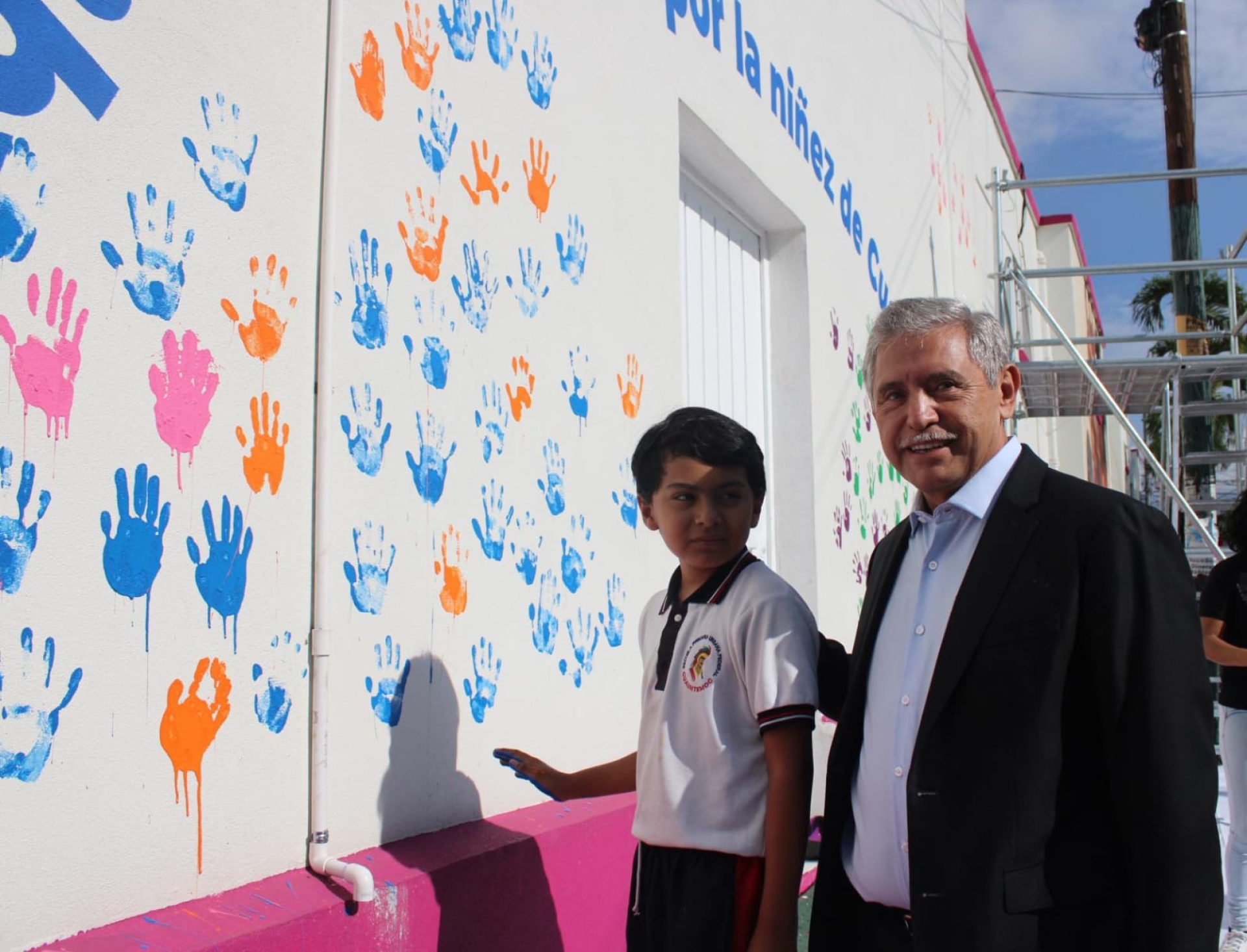 El presidente municipal de Cuernavaca, José Luis Urióstegui Salgado, inauguró el mural de la niñez afuera de la sede Papagayo del ayuntamiento capitalino, en la calle Nezahualcóyotl.