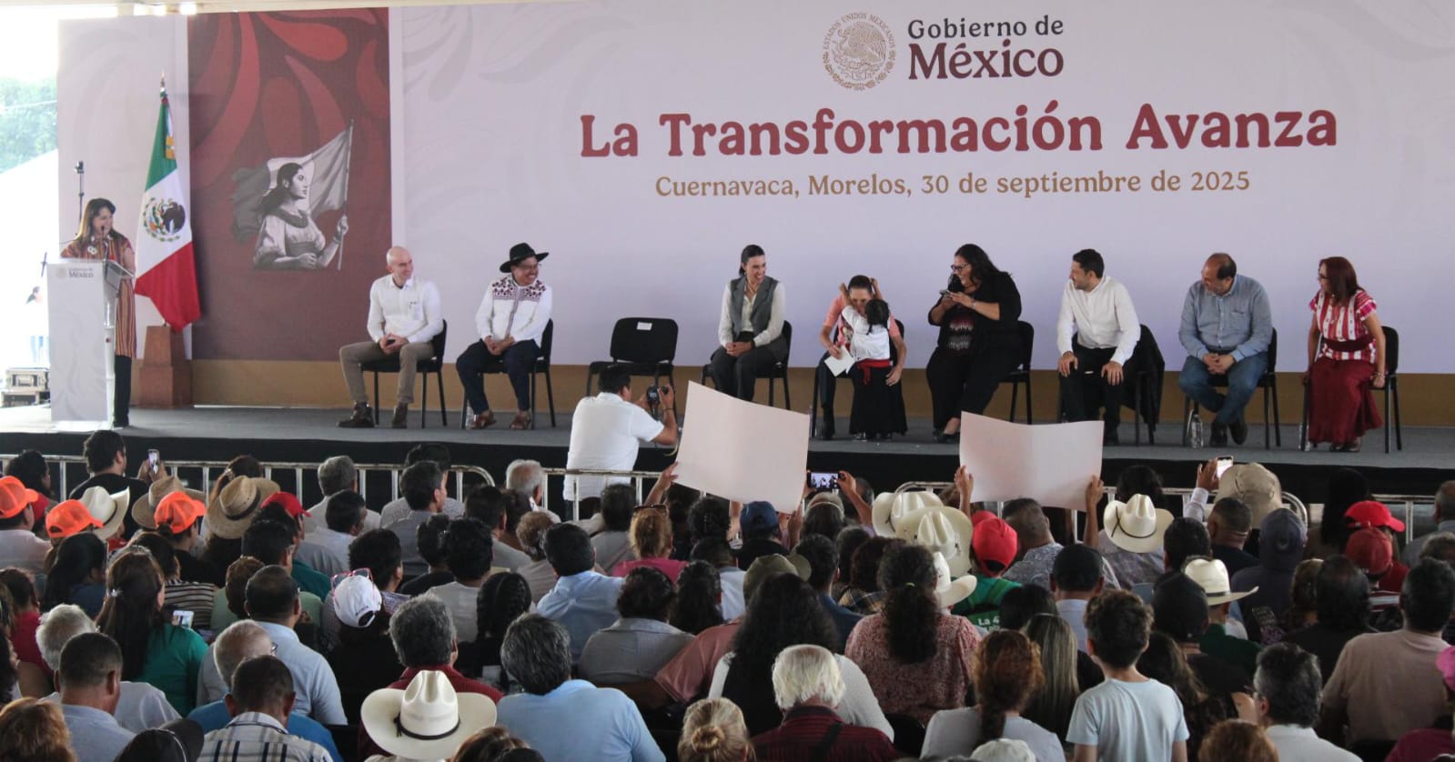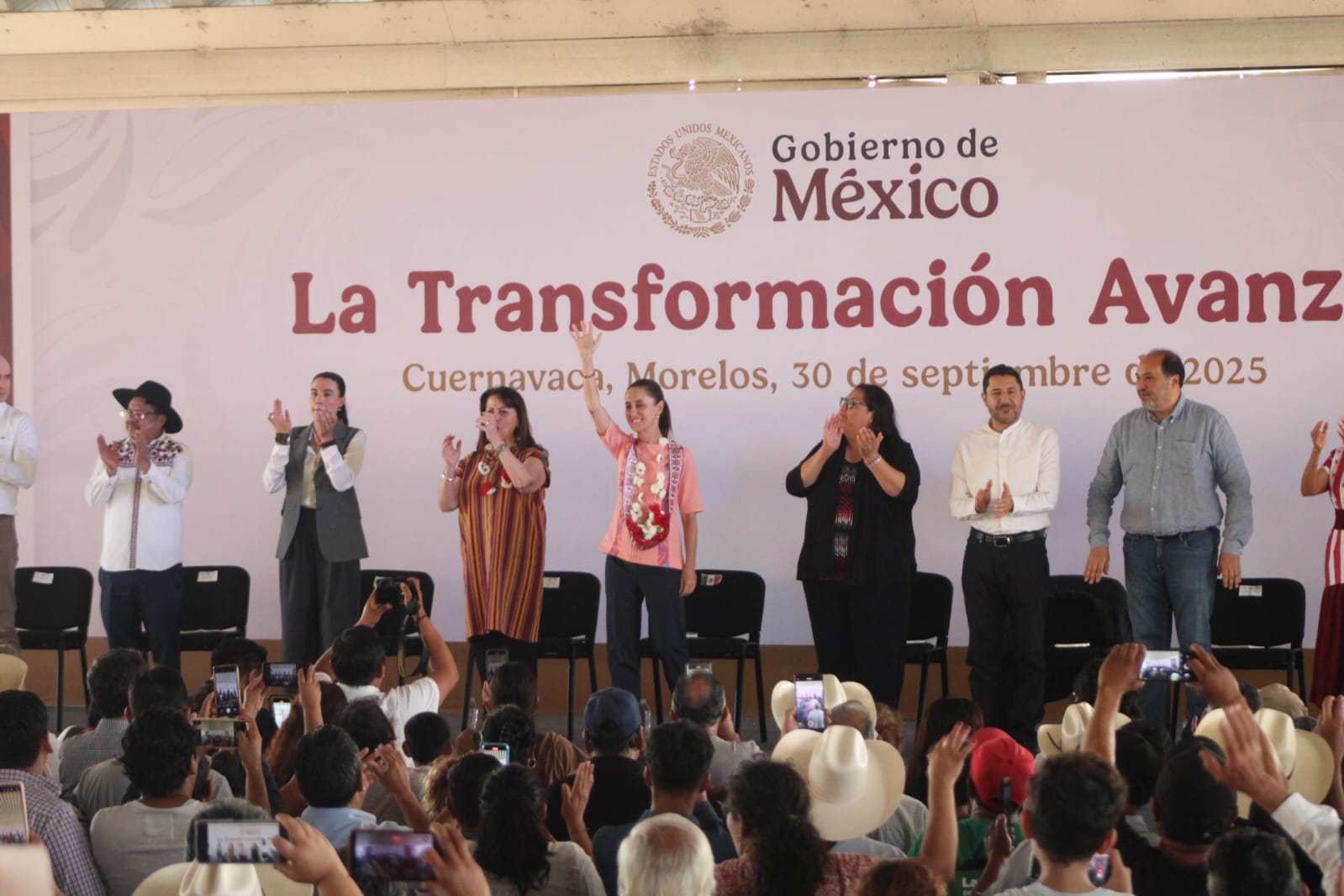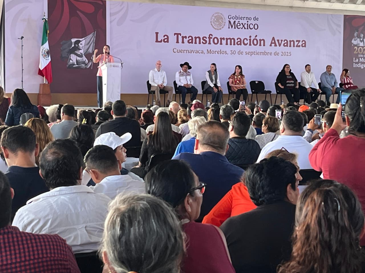 Como parte de su gira de rendición de cuentas, la presidenta Claudia Sheinbaum Pardo arribó a Cuernavaca, donde la aguardaban la gobernadora Margarita González Saravia y miles de morelenses.