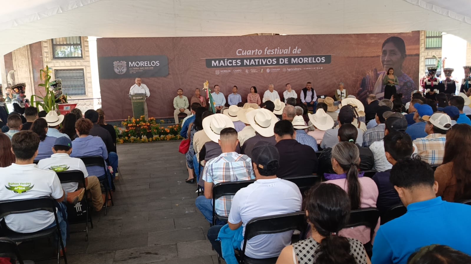 Esta mañana se lleva a cabo, en la plaza de armas "General Emiliano Zapata", el Cuarto Festival de Maíces Nativos de Morelos.