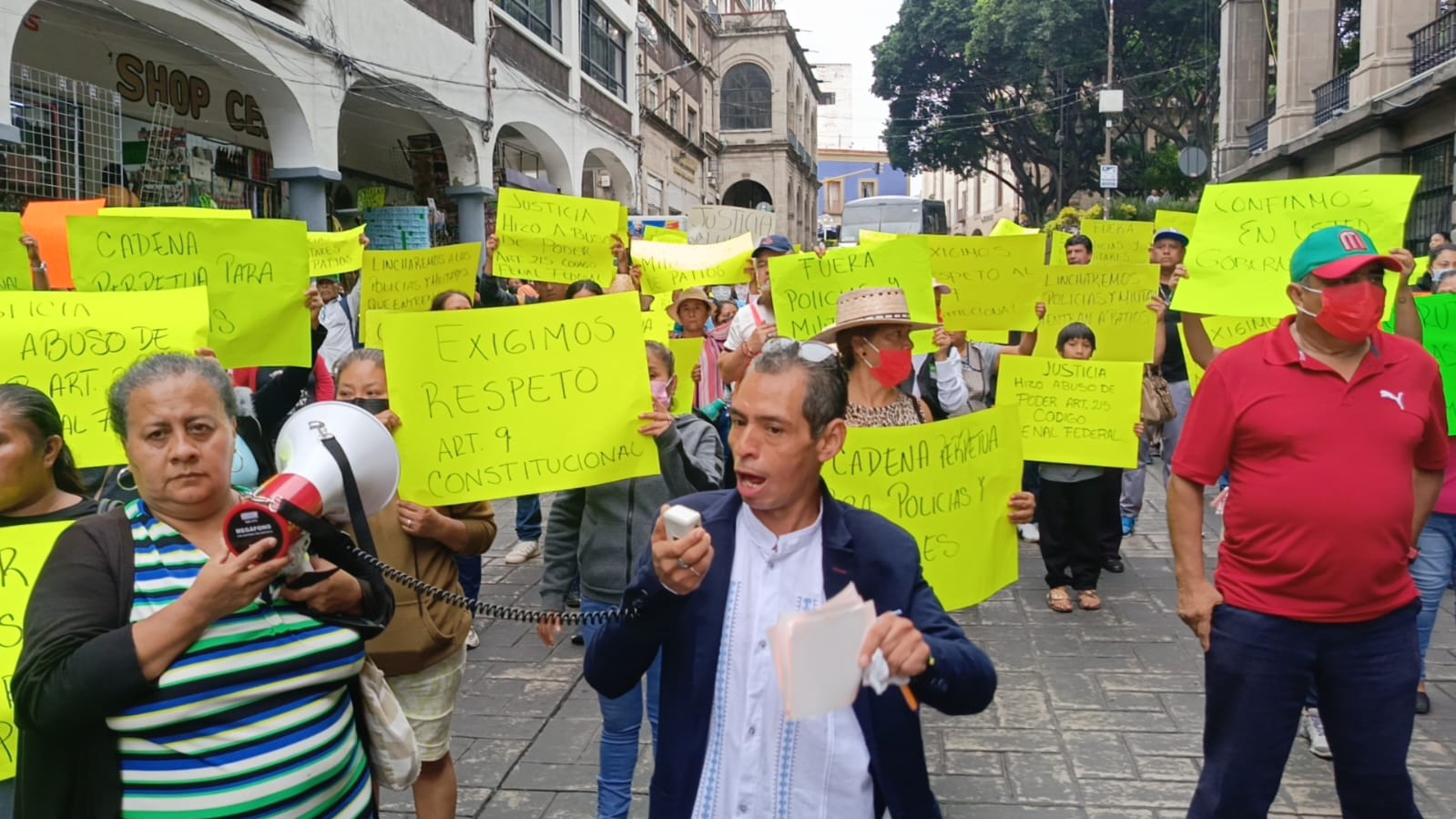 Vecinos de Patios de la Estación se manifiestan este miércoles en Cuernavaca, en demanda de justicia tras la muerte del joven identificado como Luis Ángel "N" por disparo de arma de fuego, presuntamente por parte de un elemento policiaco.