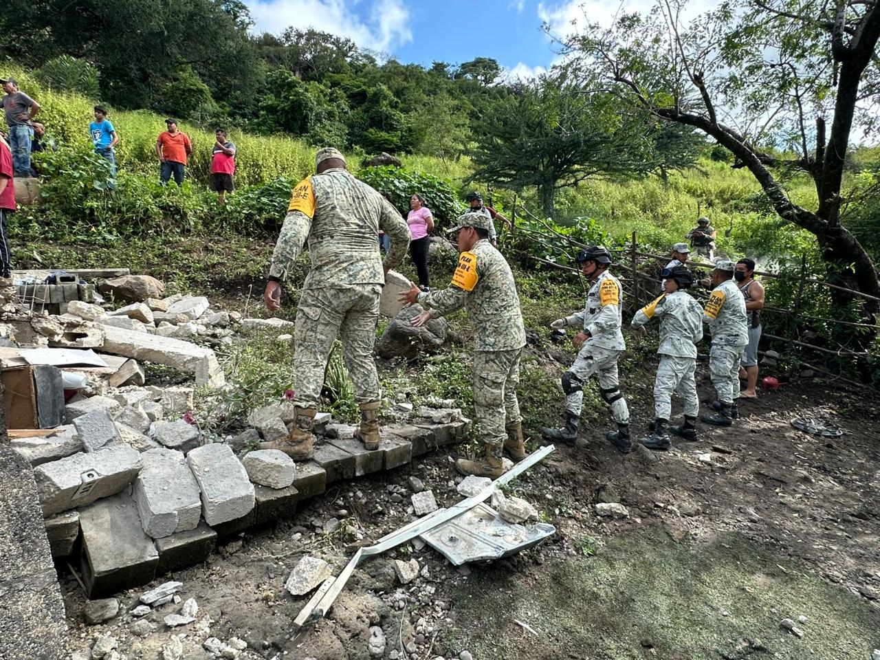 Personal Militar, Guardia Nacional, ERUM y Protección Civil llevaron a cabo la aplicación del Plan DN-III-E tras el derrumbe ocurrido en la zona.