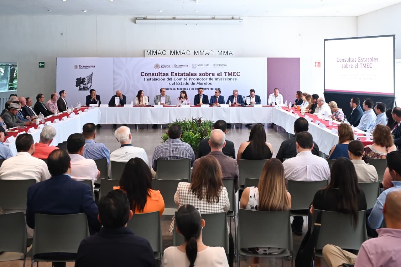 La gobernadora Margarita González Saravia encabezó la instalación del Comité Promotor de Inversiones y Consultas T-MEC en Morelos, con el acompañamiento de la Secretaría de Economía (SE) del Gobierno de México y representantes del sector empresarial, sumando al estado a la Estrategia Nacional de Atracción de Inversiones del Plan México.