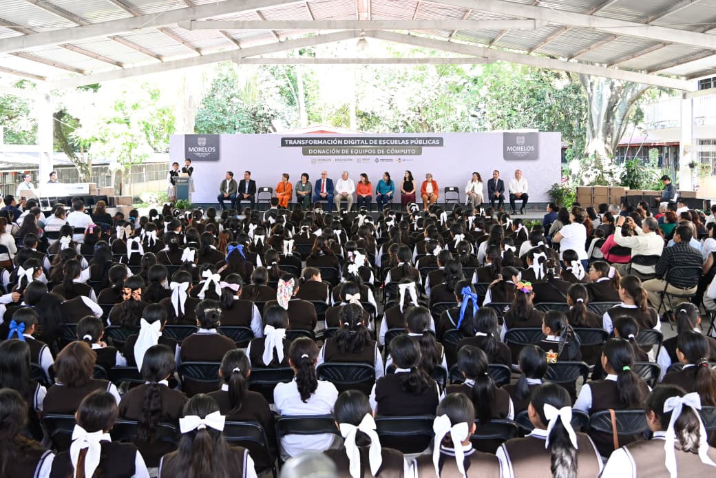 La ceremonia se realizó en la Escuela Secundaria Técnica No. 1 “General Lázaro Cárdenas del Río” (Internado Palmira) en Cuernavaca, con la participación de autoridades de la Secretaría de Educación Pública (SEP) y de la Fundación Emilia Palomino, responsable de la donación que impulsa la Transformación Digital Educativa en el estado.